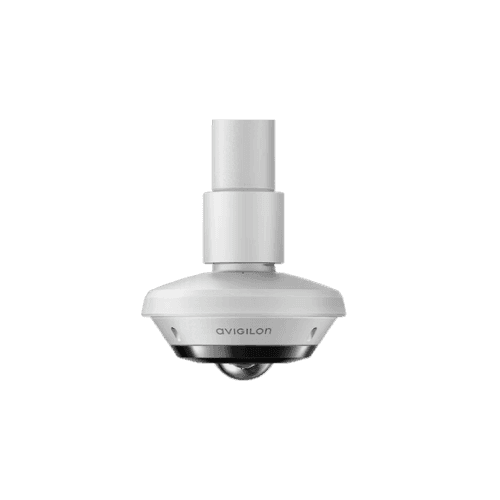 The Avigilon Unity H5A Fisheye delivers up to 12 MP resolution with 180° or 360° panoramic coverage from a single camera. Equipped with AI-powered video analytics and multiple dewarping views, it provides comprehensive situational awareness for large indoor areas such as retail floors, lobbies, and open spaces.